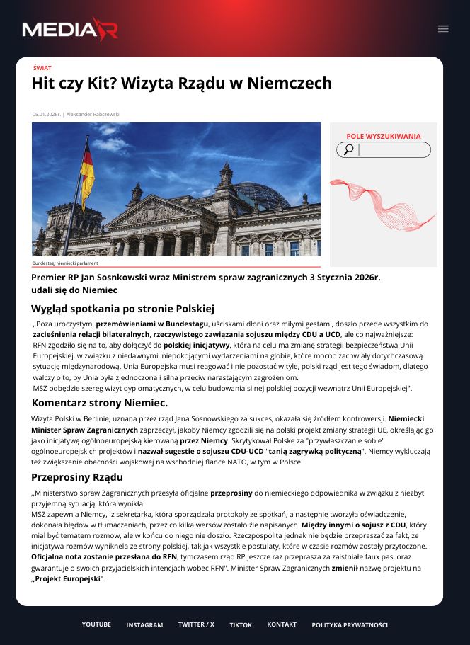 Premier Jan Sosnkowski wraz z Ministrem Spraw Zagranicznych 3 stycznia 2026 r. udali się do Niemiec